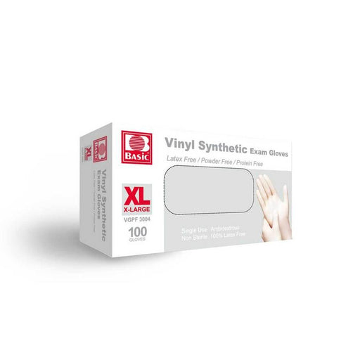 Basic Vinyl Synthetic Glove Latex Free Powder Box of 100 (Clear, X-Large)